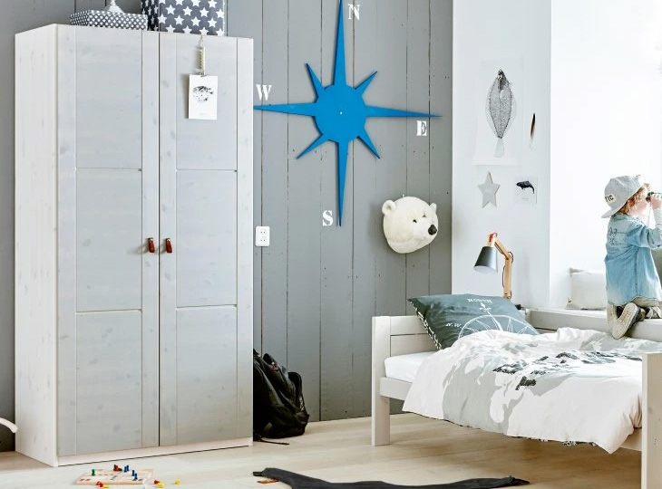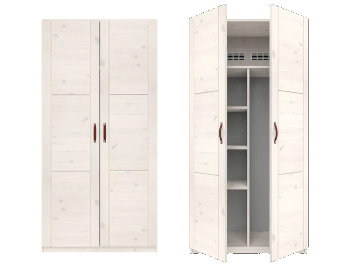 De 2-deurs kledingkast is ontworpen met eenvoud en functionaliteit in gedachten, daarom zal de kledingkast nog vele jaren in elke kinderkamer passen. Er zit een ventilatiekanaal achter de kledingkast, zodat de inhoud van de kledingkast geventileerd wordt.