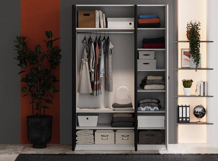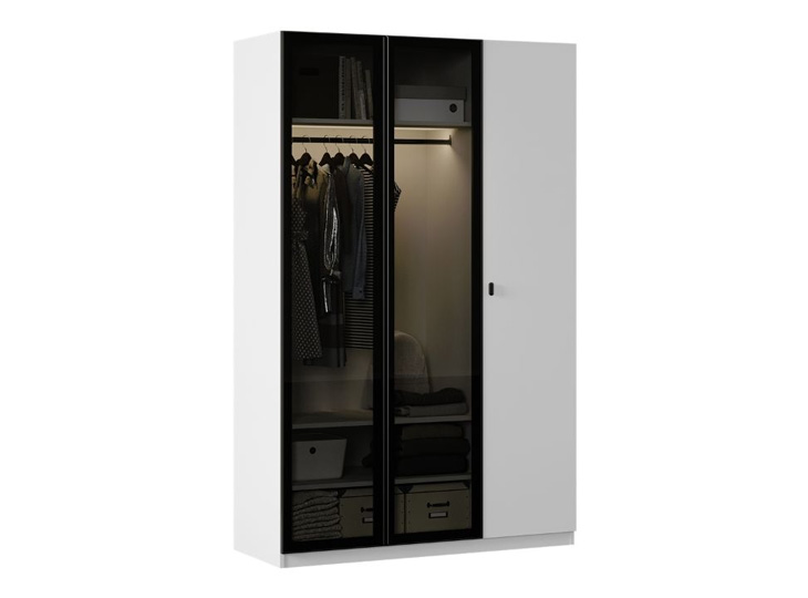 Geniet van overvloedige kastruimte met deze prachtige Vena 3-deurskast met twee glasdeuren, vervaardigd van melamine houtvezelplaat met een elegante witte afwerking. Deze stijlvolle kast beschikt over één witte deur en twee prachtige glasdeuren met brede zwarte rand. Ook is er een brede legplank, een kledingroede met ledverlichting en drie legplanken achter zowel de linker- als middendeur. Achter de rechterdeur vind je ook nog meer handige legplanken. Met meerdere Vena kasten kun je zelfs een prachtige kastenwand creëren. En je kan de sfeer nog leuker maken als je het combineert met de andere Vena meubels uit ons assortiment. In het geval dat je geen ruimte genoeg hebt met deze kast, is er ook goed nieuws. Er zijn namelijk heel veel soorten Vena kledingkasten waarmee je het perfect kan combineren. De mogelijkheden zijn eindeloos!