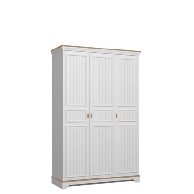 Ontdek de perfecte combinatie van ruimte en stijl met de Monte 3-deurs kledingkast.  De gebroken witte kleur met naturelkleurige details geeft een frisse en klassieke uitstraling die perfect past in elke slaapkamer. De Monte 3-deurs Kledingkast biedt voldoende opbergruimte voor al je kleding en accessoires. De binnenverdeling zorgt voor een overzichtelijke indeling, waarbij je gemakkelijk je kleding kunt organiseren. De twee kledingroedes bieden ruimte voor hangende kleding, terwijl de planken ideaal zijn voor opgevouwen kleding, schoenen en andere accessoires.