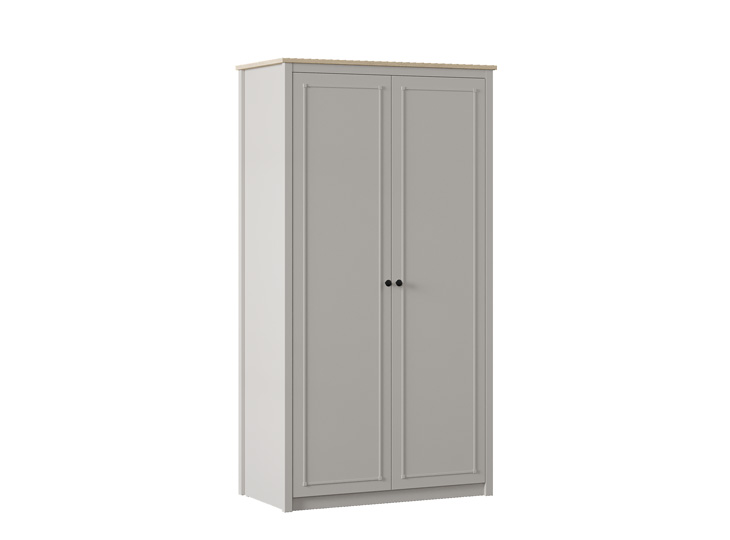 De Sento 2-deurs Kledingkast biedt een stijlvolle en functionele opbergoplossing voor elke slaapkamer. Gemaakt van hoogwaardig spaanplaat, deze kast is uitgevoerd in een moderne grijze kleur met subtiele eiken accenten. De kast is voorzien van een doordachte indeling die zorgt voor maximale opbergruimte. Aan de linkerkant zijn vijf legplanken ideaal voor het opbergen van kleding, accessoires of linnengoed. Aan de rechterkant biedt de kast twee kledingroedes.