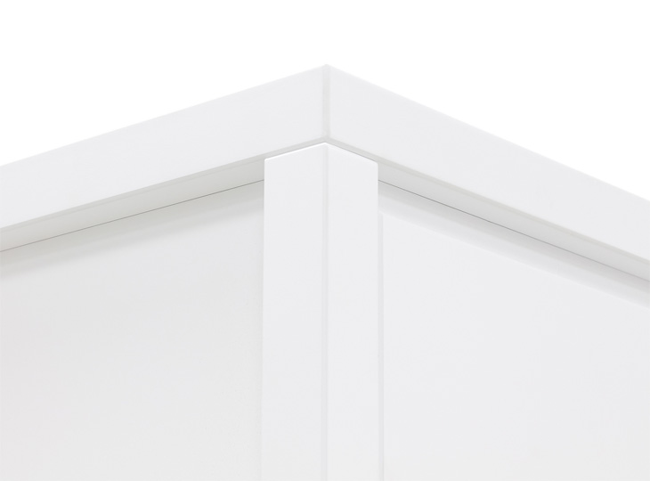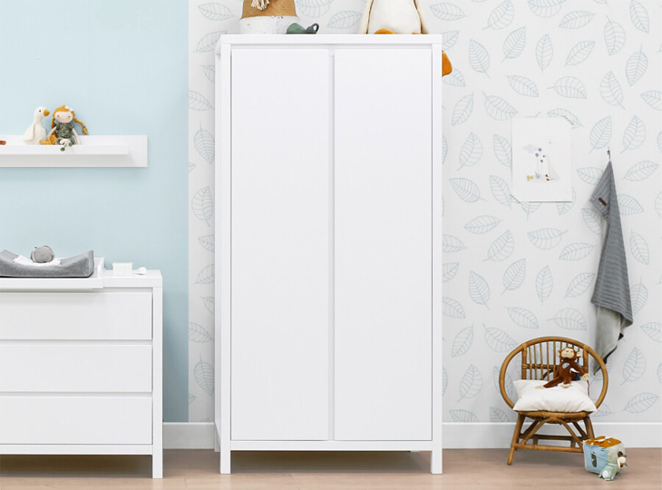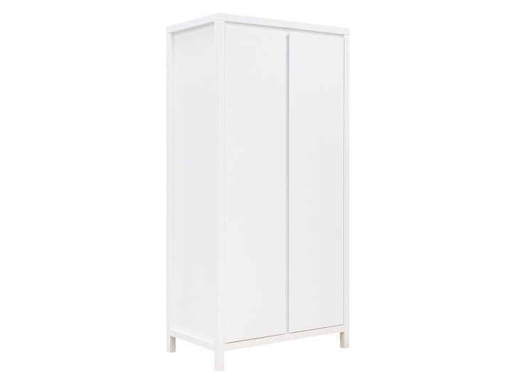 Deze ruime kledingkast van de serie Corsica is voorzien van twee deuren voorzien van softclose en is omkaderd met een solide frame. De kast is gemaakt van stevig MDF, afgewerkt met een lak op waterbasis. Deze lak is veilig voor kinderen en milieuvriendelijk. De deuren zijn greeploos uitgevoerd, wat de kast een modern, strak uiterlijk geeft. Het interieur van de kast bestaat uit een verstelbare hangroede, een vaste legplank en twee verstelbare legplanken. Zo kan je de kast naar eigen inzicht indelen.