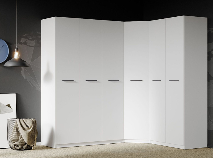 Hoekkast Legend Wit, Deze hoekkast is compleet ingericht en heeft verrassend veel opbergruimte! Aan de linkerkant 2 grote legplanken en 1 kledingroede, aan de rechterkant 5 kleine legplanken. Dit wordt standaard meegeleverd. Deze hoekkast in met LED verlichting is vervaardigd uit hoogwaardig meubelspaanplaat en metaal. Dat betekent dat je er jarenlang plezier aan beleeft. De kast is daarnaast verkrijgbaar in verschillende kleuren en er zijn ook diverse voorpanelen om uit te kiezen. Je vindt dus zeker een model dat perfect in de slaapkamer past. Je kan de sfeer nog leuker maken als je het combineert met de andere Legend meubels uit het Rocky assortiment. De mogelijkheden zijn eindeloos! In de serie Legend kunnen we u diverse kledingkasten aanbieden in verschillende opstellingen. U kunt ze combineren tot één grote kast of ze als losse kasten plaatsen. Bovendien kunt u kiezen of u de kast(en) wilt voorzien van houten of glazen deuren. U kunt naar uw eigen wens een complete kledingkast samenstellen uit de volgende onderdelen: