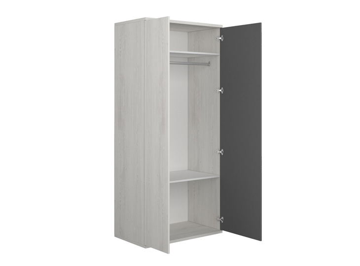 Met de ruime kledingkast Jules is er genoeg opbergruimte voor kleding en schoenen. De 2-deurskast beschikt over veel opbergmogelijkheden. Zo zit er achter de deuren een breed hanggedeelte met daarboven een ruim vak om je kleding of andere spullen neer te leggen. Onder het hangedeelte is nog een extra opbergvak om schoenen of andere accessoires op te bergen. De meubels uit de Jules serie zijn perfect met elkaar te combineren. Deze kast kan worden gecombineerd met de complete Jules kinder of tienerkamer