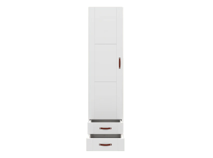 Deze prachtige 1-deurs kledingkast van Lifetime in de kleur wit zorgt voor extra opbergruimte. De kast heeft 2 lades om bijvoorbeeld ondergoed of andere kleding in te stoppen. Achter de deur vind je een legplank en een kledingroede. De 1-deurs kledingkast is ontworpen met eenvoud en functionaliteit in gedachten, daarom zal de kledingkast nog vele jaren in elke kinderkamer passen. Er zit een ventilatiekanaal achter de kledingkast, zodat de inhoud van de kledingkast geventileerd wordt.