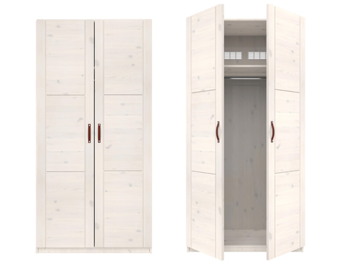De tweedeurs kledingkast van Lifetime Kidsrooms is op maat gemaakt naar de wensen van uw kind en wordt geleverd met een hangroede en plank voor voldoende ruimte om kleding op te hangen. U kunt de kledingkast aanpassen aan de behoeften van uw kind. De 2-deurs kledingkast is ontworpen met eenvoud en functionaliteit in gedachten, daarom zal de kledingkast nog vele jaren in elke kinderkamer passen. Er zit een ventilatiekanaal achter de kledingkast, zodat de inhoud van de kledingkast geventileerd wordt.