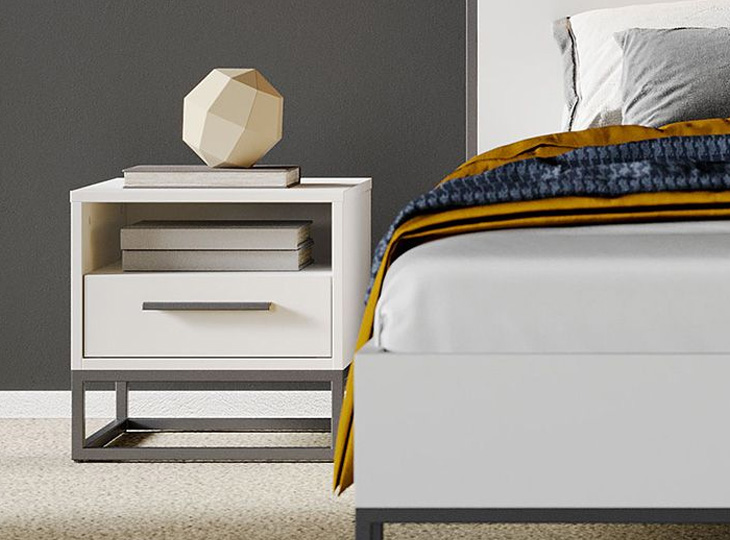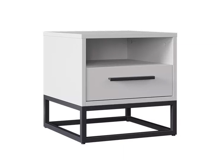 Maak jouw kamer helemaal af met het bijpassende nachtkastje! Dit nachtkastje is gemaakt van melamine houtvezelplaat. Dit stoere kastje past perfect naast je bed of als losstaand element. De nachtkast beschikt over een soft close lade en een ruim opbergvak, ideaal om spullen die je dichtbij wilt houden goed op te bergen. Het antraciet metalen frame geeft het nachtkastje een stoere industriële uitstraling.