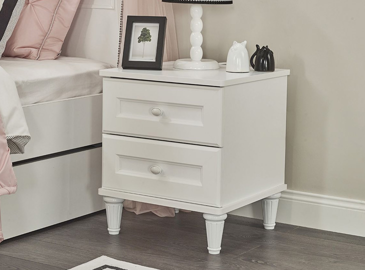Maak de meisjeskamer helemaal af met dit nachtkastje in mat wit.