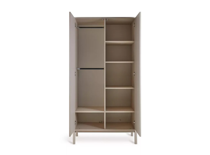 De Ashi Wardrobe is een essentieel onderdeel van de Ashi Room Collection en transformeert de ruimte van uw baby in een oase van stijl en bruikbaarheid. De twee draaideuren van de kledingkast gaan moeiteloos open met een zachte duw, dankzij het push-to-open systeem, dat zowel functioneel als esthetisch aantrekkelijk is. Het is uitgerust met drie verstelbare planken en twee kledingstangen, zodat u de opslagruimte effectief kunt maximaliseren en organiseren.
