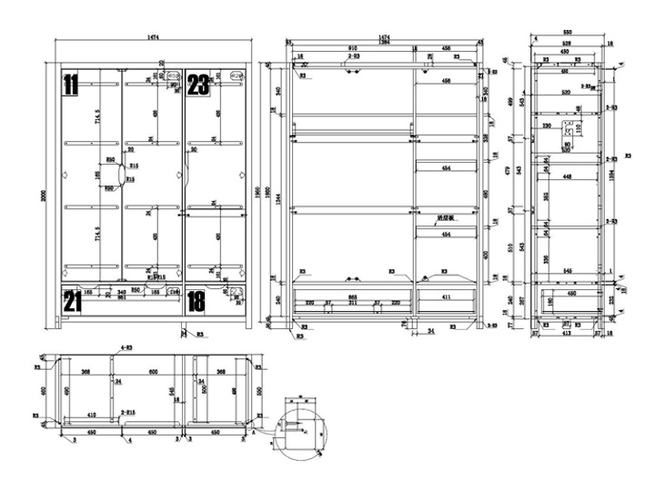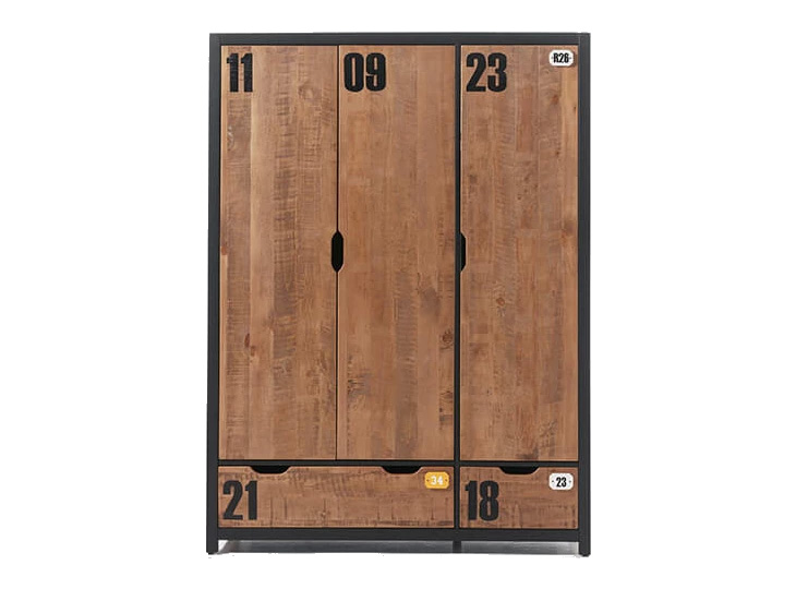 Dankzij deze veelzijdigheid kunnen alle verschillende soorten kleding een plekje krijgen in deze stoere kledingkast.