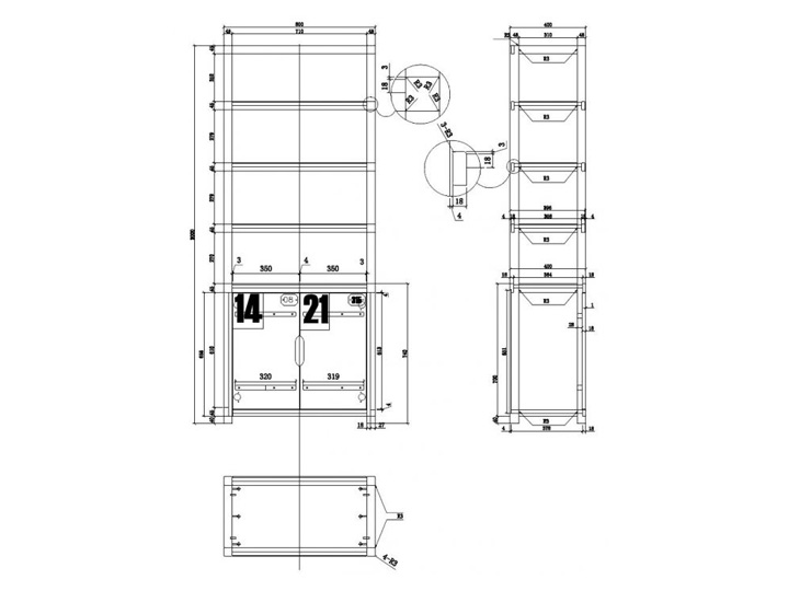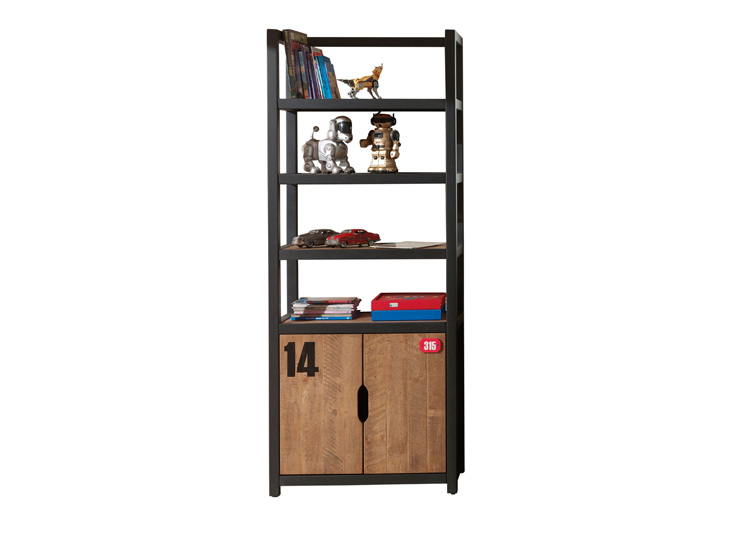 Deze boekenkast heeft 4 legplanken met daaronder een kleine kast met 2 deuren. De uitvoering is in geborsteld dennenhout.