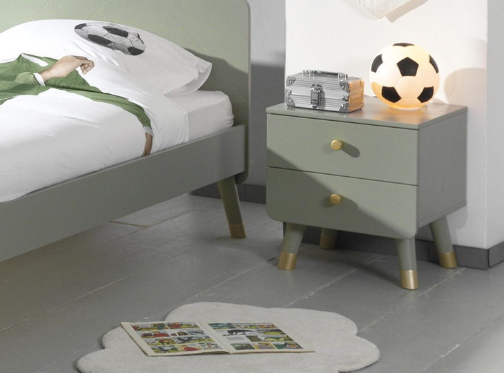 Nachtkastje Billy heeft een unieke uitstraling. Het grafische patroon in combinatie met de gouden pootjes en handgrepen zorgen voor een retro modern karakter. Het nachtkastje beschikt over 2 lades, zodat er voldoende ruimte is voor alle essentiële spullen. Samen met het bed in Olive Green uit de Billy serie maak je de slaapkamer helemaal af!