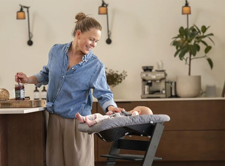 De newbornset voor de Stokke Tripp Trapp plaats je bovenop de leuning van je stoel. Dankzij de meegeleverde gliders voor de poten blijft je stoel stabiel staan. Deze newbornset heeft groene en rode indicatoren zodat je weet wanneer de set goed op de stoel is gemonteerd. De newbornset is als een soort wipstoel, waar jouw pasgeboren baby heerlijk in kan liggen. Dankzij het 5-puntsveiligheidstuigje ligt jouw kindje veilig in de stoel. Zijwaartse ondersteuning en de juiste rughoek bieden je baby goede ondersteuning en een comfortabele zithouding. De bekleding is afneembaar en wasbaar in de wasmachine op 40 graden. Aan de speelgoedhanger kun je de favoriete speeltjes hangen van jouw kleine.