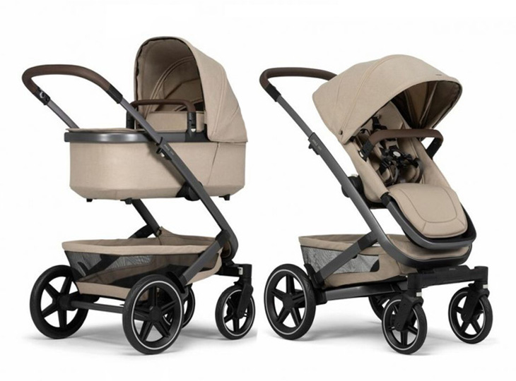 De Joolz Geo³ Sandy Taupe wordt standaard geleverd met Kinderwagen met reiswieg, wandelwagen en boodschappenmand.