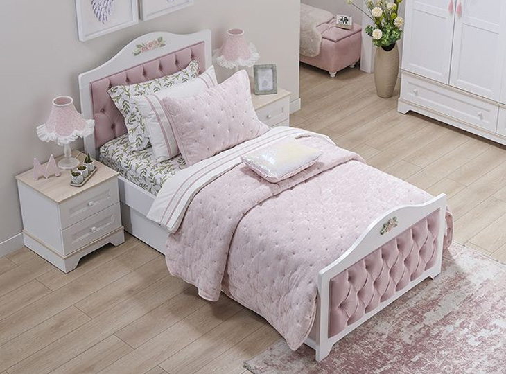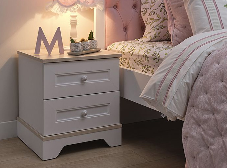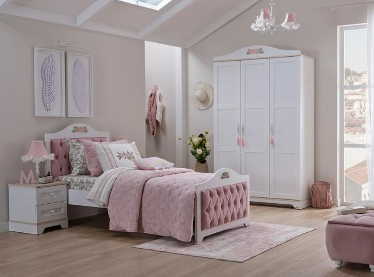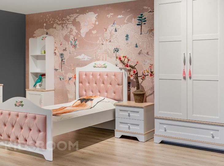Kinder-/tienerkamer Bianca, in deze geweldige 3-delige set! Het Twinbed (120x200) uit de serie Bianca is voorzien van een Roze gestoffeerd hoofd- en voetbord. Het landelijke witte design wordt extra bijzonder door de prachtige bloemen die zijn afgebeeld op het hoofd- en voetbord. De ruime 3-Deurskast heeft achter de linker- en middendeur 2 legplanken en 2 kledingroedes. Achter de rechterdeur 5 legplanken. Hierdoor dus genoeg opbergruimte voor al jouw kleding! De kledingroedes zijn voorzien van ledverlichting. Het nachtkastje maakt de kamer helemaal af, deze is voorzien van 2 lades waarin alle spulletjes kunnen worden opgeborgen.