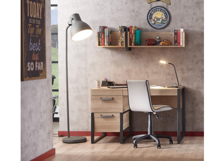 Robuust tienerkamer Irony in een stoere industriële look. Het stoere materiaalgebruik en de eigentijdse vormen, geven deze Irony tienerkamer een moderne uitstraling.