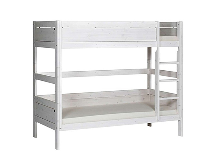 Lifetime stapelbed met rechte trap, whitewash rollattenbodem.