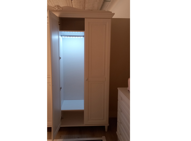 En een 3-deurskast, deze heeft een kledingroede met ingebouwde LED-verlichting!